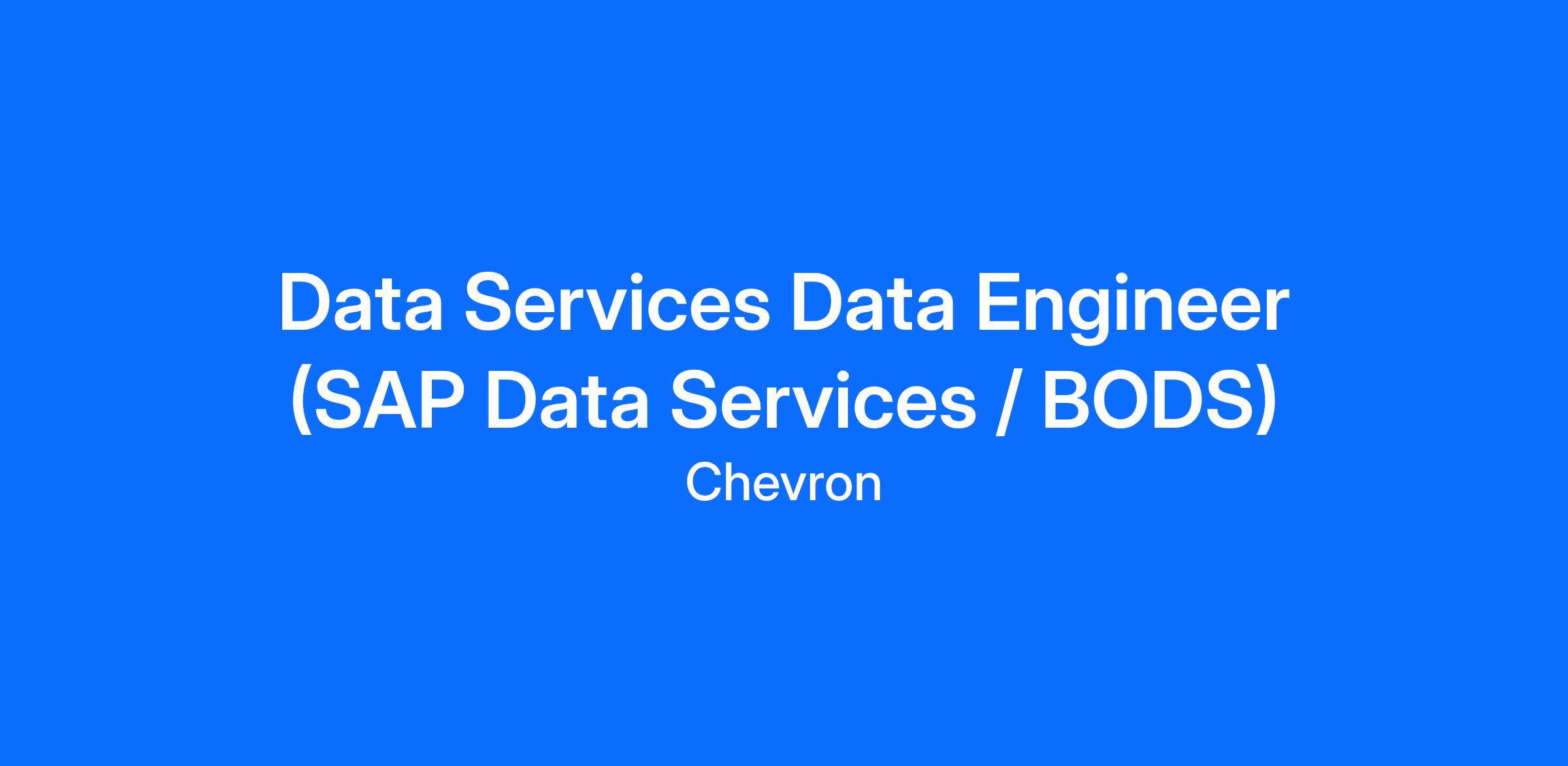 GBS Chevron Global Business Services (GBS), located in Buenos Aires (Puerto Madero), Argentina, is accepting applications for the position of Data Services Data Engineer (SAP Data Services / BODS). Successful candidates will join the IT Organization, which is part of a multifunction service and technical center with a workforce of more than 1800 employees that deliver business services and solutions to the corporation across the globe.