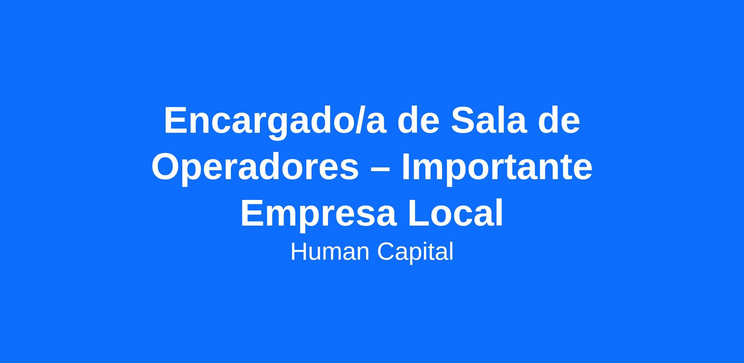 Encargado/a de Sala de Operadores – Importante Empresa Local
