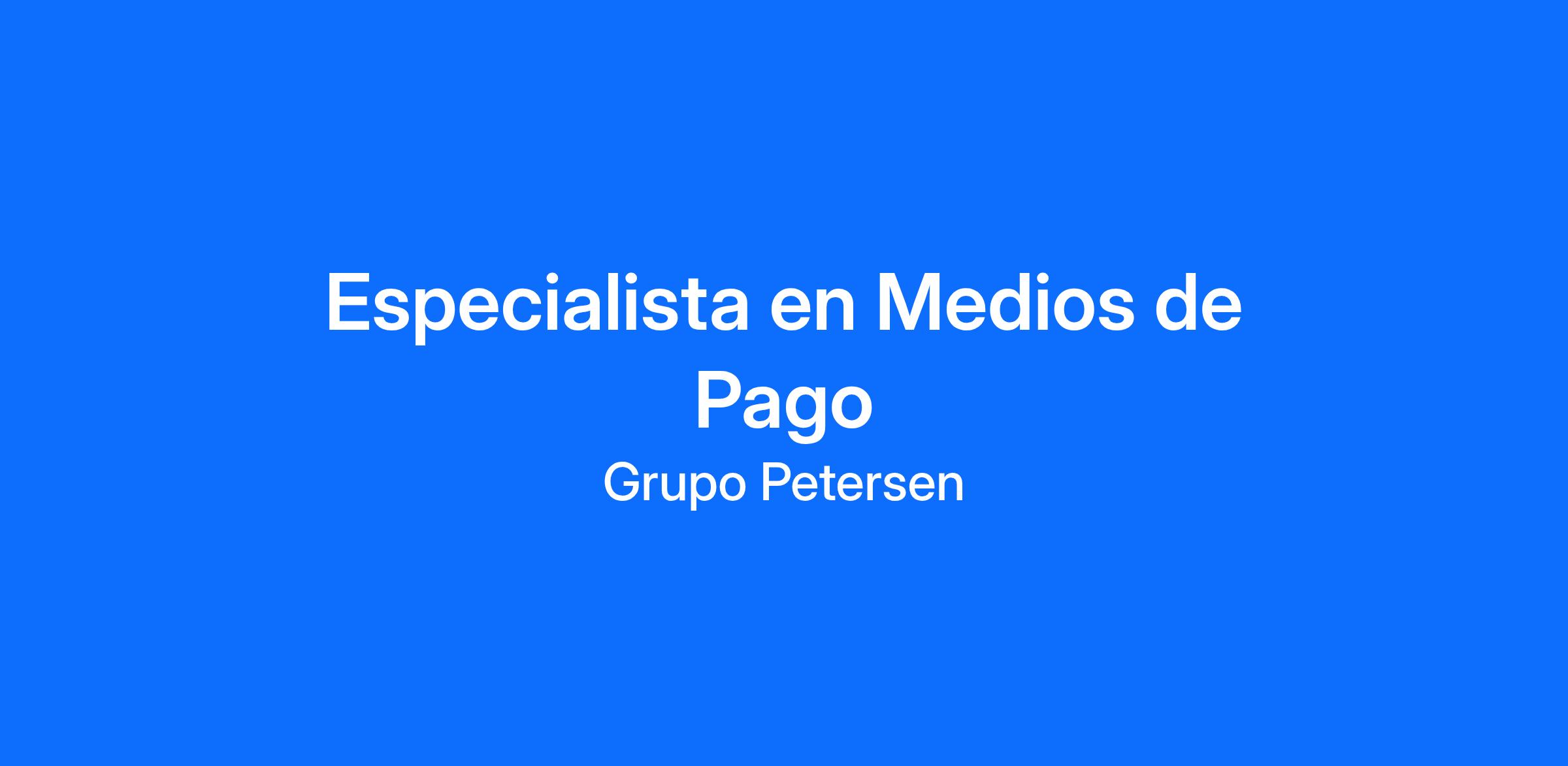 En Grupo Petersen nos encontramos en la b煤squeda de un/a Especialista en Medios de Pago, con foco en impulsar el crecimiento, la competitividad y la innovaci贸n dentro del ecosistema de pagos del Grupo.