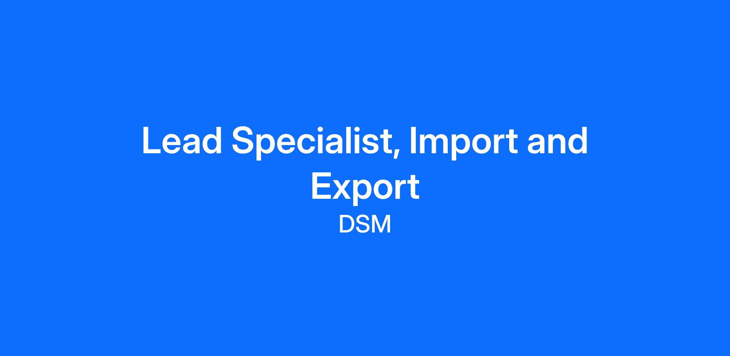 Nombre del Puesto: Lead Specialist, Import and Export