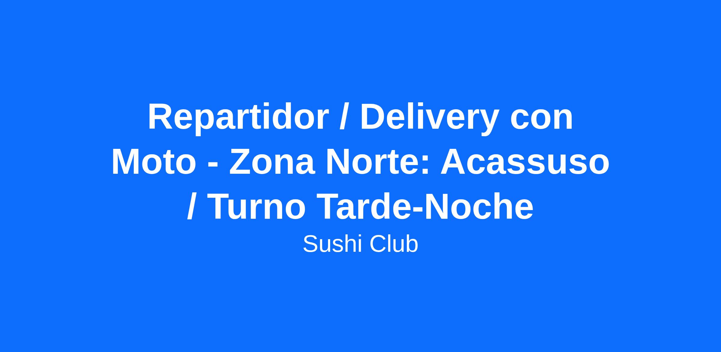 Importante cadena de restaurantes de primer nivel, con presencia multinacional se encuentra en la incorporación de un repartidor con moto para nuestro local de Zona Norte: Acassuso.