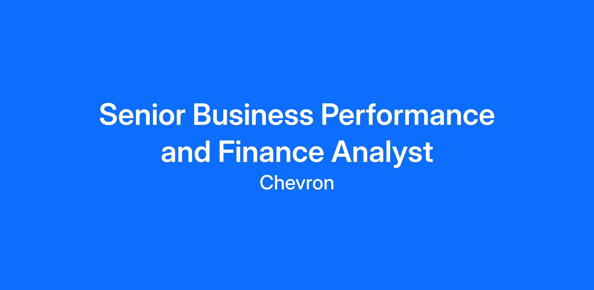 Chevron is accepting online applications for the position Senior Business Performance and Finance Analyst through April 10th, 2026 at 11:59 p.m.