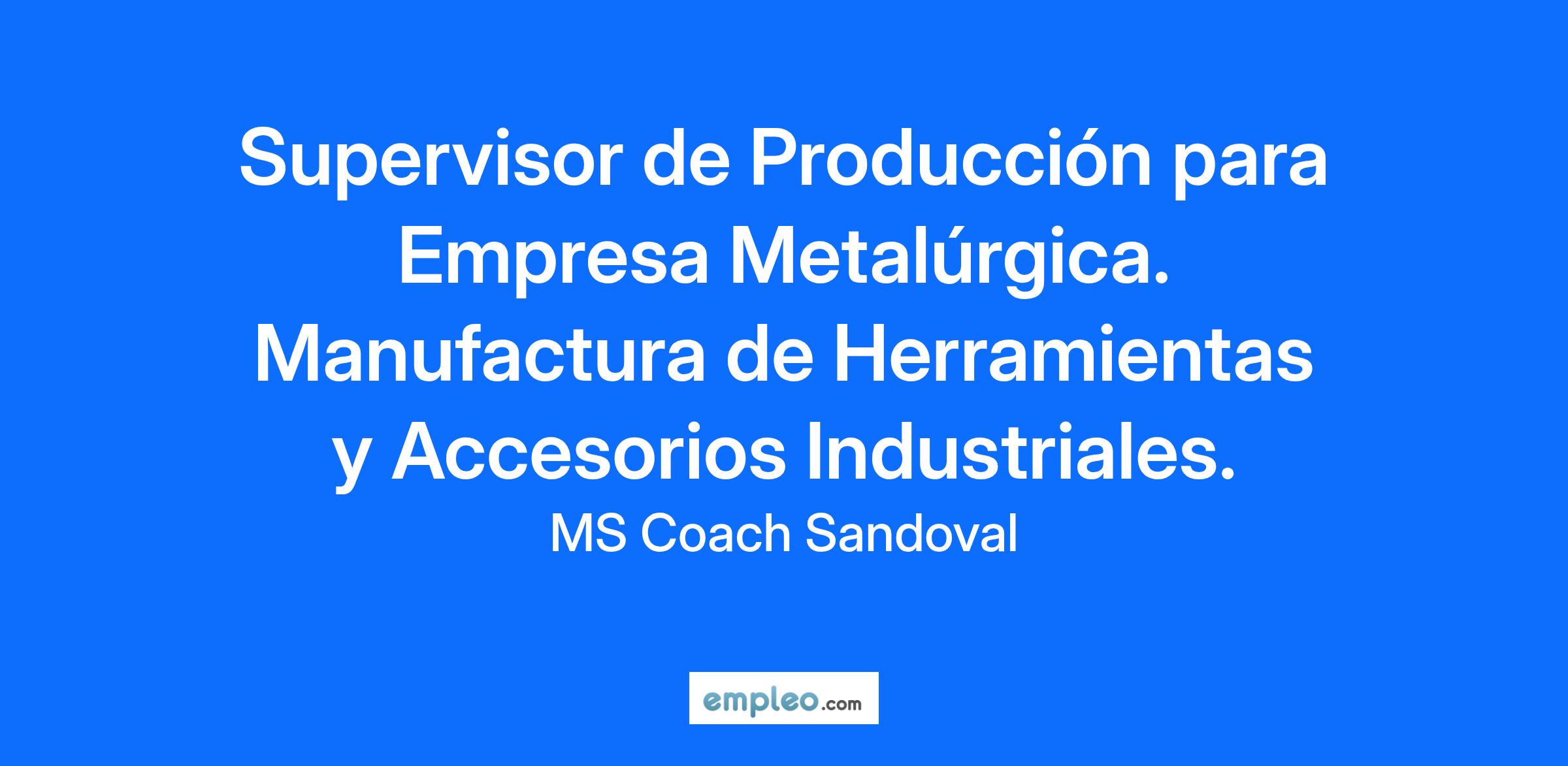 Importante Empresa especializada en soluciones de corte y mecanizado para industrias como la Automotriz, Alimentos y Construcción busca un Supervisor de Producción altamente calificado y motivado para unirse al equipo en una empresa metalúrgica líder en la industria.